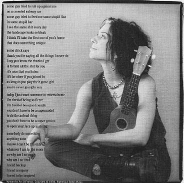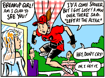 So guess what world! Being a superhero is not as hard as I thought it would be. Once I'd decided I must live well, and stay moral, my powers just continued to build. Now every setback is merely an excersize in my new-found powers. Maybe cliche... but damn it works! And I have the superpowers to prove it. Breakup Girl is my totem superhero, along with Ani DiFranco. Yours? I know there are other superheroes out there... In fact if you're reading this, you are already excersizing one of your powers. I want more info, do you? Click my e-mail at the bottom of this page, and relay a super-duper electronic message to me. Please no exploding messages or inherently villainous superfolk. Click below for free webspace. | |||||||||||||||||||||||